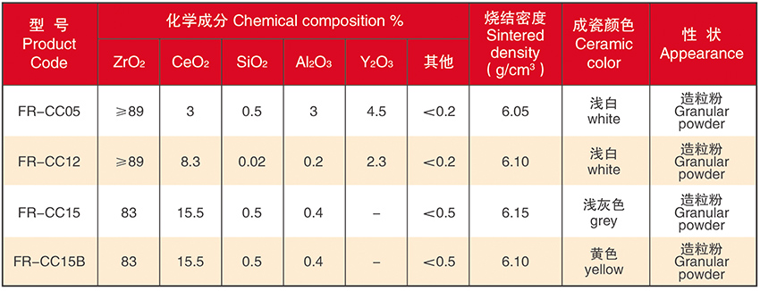 With special production process, we can produce different Ce-PSZ powder by adjusting the content of Ce.